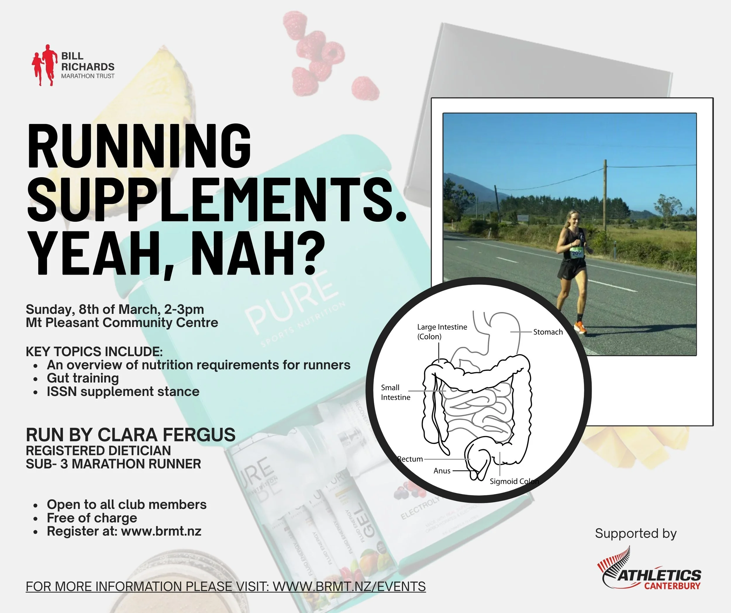A review of the latest sports nutrition evidence with a side of taste testing/checking out the latest Pure supplements in long distance prior to (during training) and during events such as the upcoming Christchurch and Gold Coast marathons and half marathons